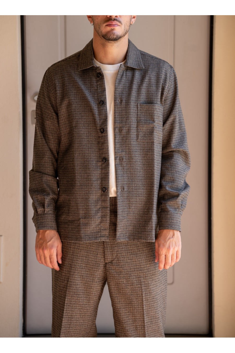 Camicia uomo Messagerie pied de poul verde/marrone: un capo elegante e versatile che unisce linee pulite e stile contemporaneo. Realizzata in tessuto leggero e confortevole, presenta chiusura a bottoni frontale con dettagli neri a contrasto e taschino sul petto. La vestibilità regolare e il taglio essenziale la rendono perfetta per look casual chic, sia con pantaloni coordinati che con denim o chino. Una scelta raffinata per chi cerca qualità e stile Made in Italy