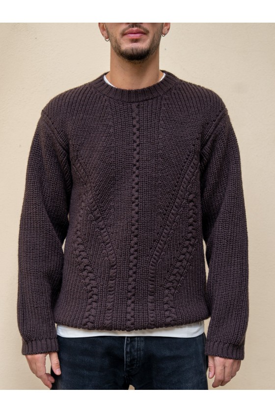 Lavorazione: intrecci a maglia su tutto il davanti con dettagli tridimensionali di grande effetto.