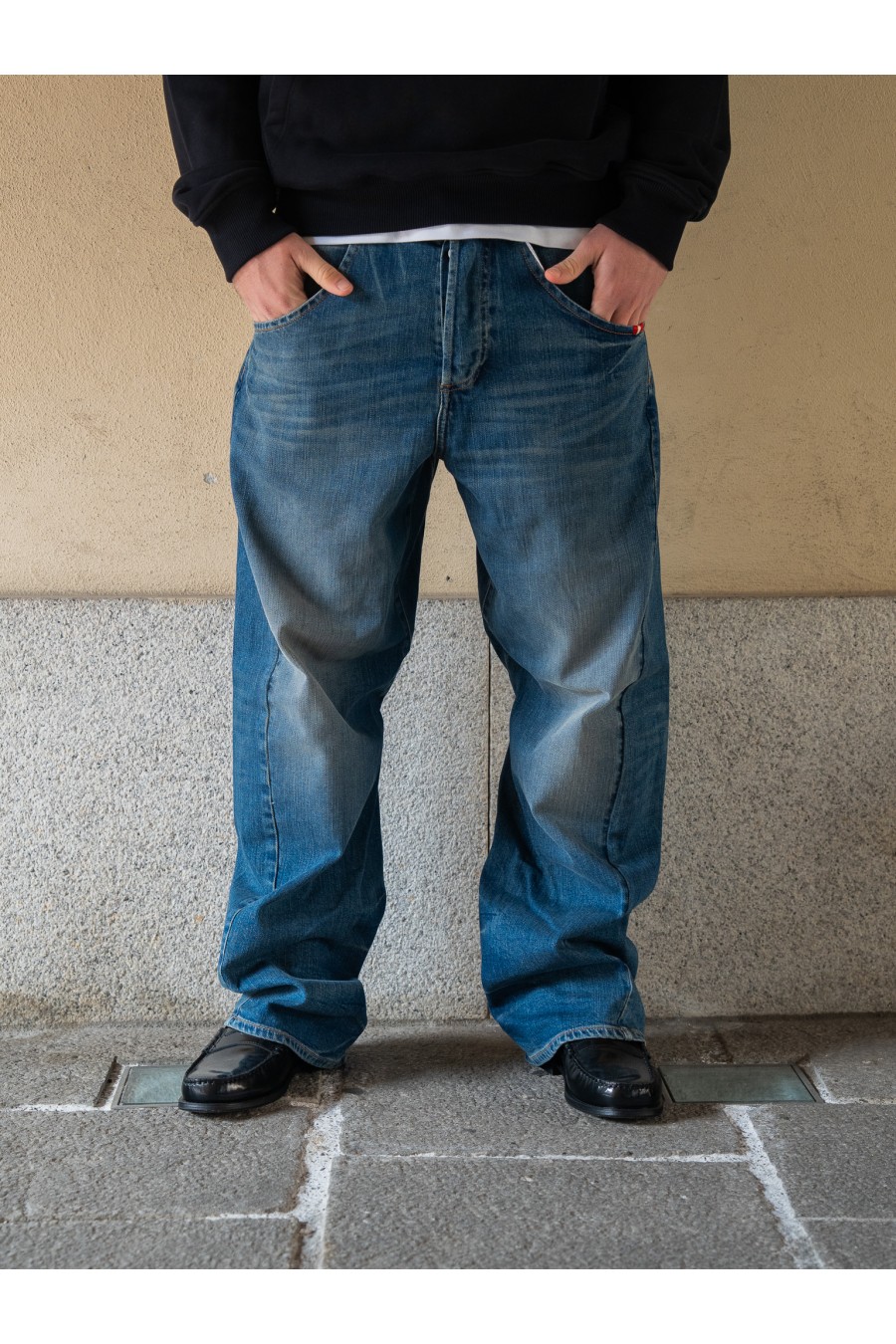 jeans AMISH balloon fit rappresentano la scelta ideale per chi cerca uno stile contemporaneo e di tendenza. Realizzati in denim di cotone resistente, si distinguono per il loro lavaggio medio con effetto vissuto, che dona carattere e autenticità al capo.