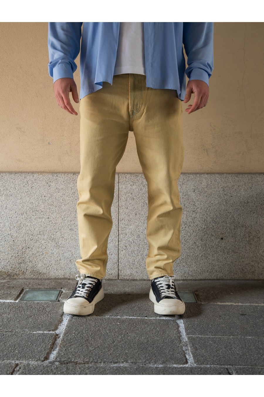 I jeans AMISH in denim beige rappresentano un’alternativa contemporanea al classico denim blu, perfetti per chi cerca uno stile casual ma distintivo. Realizzati in cotone resistente, offrono una vestibilità comoda e versatile, ideale per l’uso quotidiano.