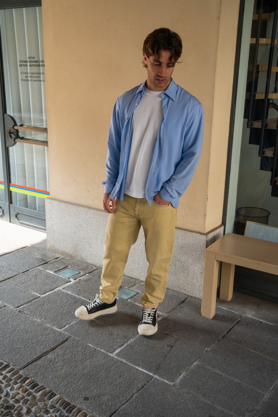 Il design minimal è valorizzato dalla colorazione beige con leggere sfumature effetto vissuto, che dona carattere senza rinunciare all’eleganza. Perfetti da abbinare a camicie o t-shirt, questi jeans si inseriscono facilmente in qualsiasi guardaroba urbano.
