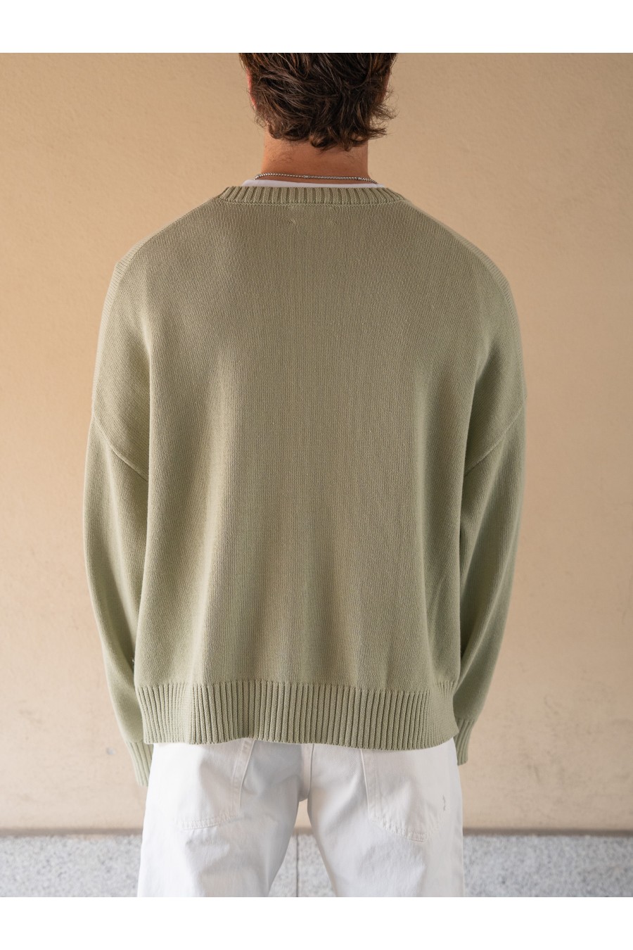 La maglia AMISH da uomo in tonalità verde salvia unisce comfort e stile contemporaneo con un design distintivo. Realizzata in maglia tricot morbida, presenta una vestibilità oversize ideale per un look rilassato e moderno.