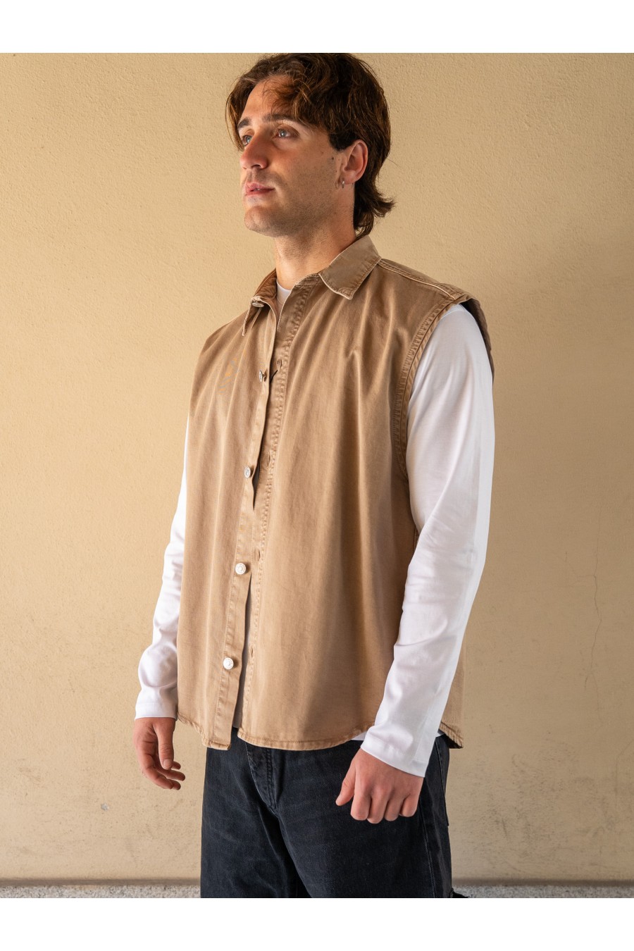 La Camicia Smanicata I’M BRIAN beige rappresenta un capo versatile e di tendenza, perfetto per creare outfit stratificati dal carattere contemporaneo. Realizzato in tessuto leggero e resistente, presenta un design minimal con chiusura frontale a bottoni e taglio smanicato che lo rende ideale per la mezza stagione.