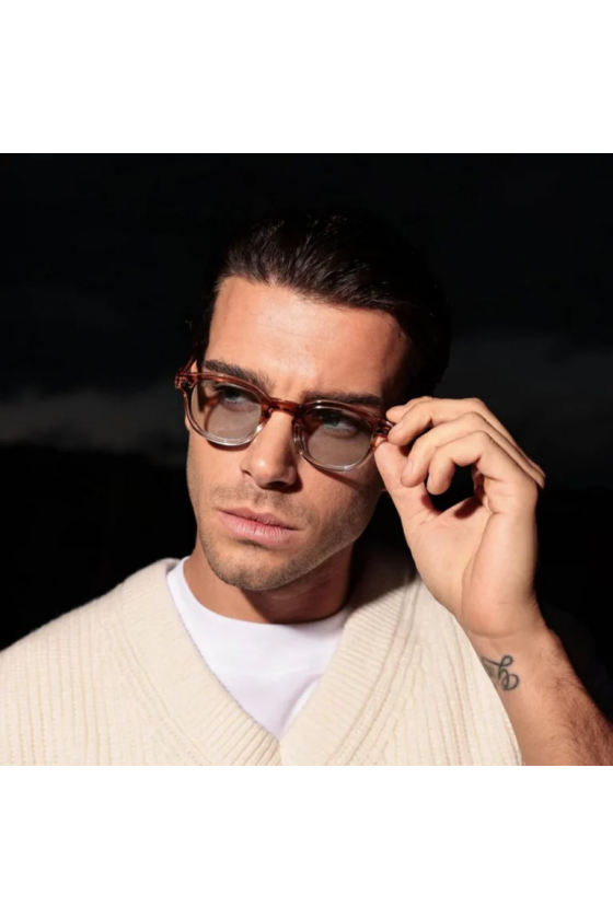 Gli occhiali da sole OS SUNGLASSES Berlino Sand Giallo reinterpretano il classico design pantos con un’estetica calda e contemporanea. La montatura effetto sabbia trasparente con sfumature ambrate dona profondità e carattere, mentre le lenti giallo chiaro offrono una visione luminosa e rilassata, perfetta per un look distintivo.