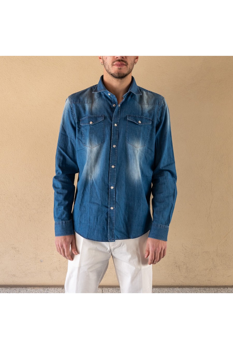 La camicia uomo URBAN RING in denim blu è il perfetto equilibrio tra stile casual e spirito contemporaneo. Realizzata in denim leggero e confortevole, presenta un design moderno con effetto leggermente slavato che dona profondità e carattere al capo.