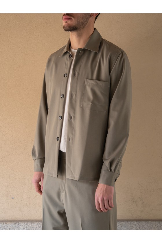 Dettagli: colletto classico; taschino frontale; bottoni chiari (avorio / madreperla / tono tenue); arricciatura diffusa su tutta la superficie del tessuto; cuciture semplici.