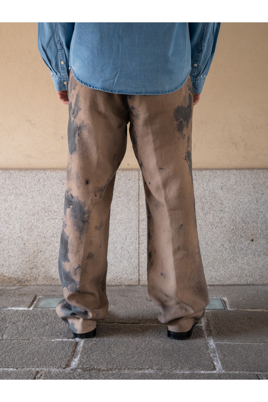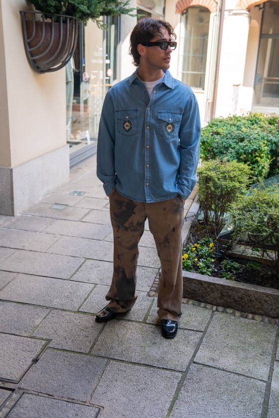 Il pantalone uomo MESSAGERIE ethan fango è un capo distintivo che unisce creatività e design contemporaneo. Realizzato in tessuto leggero e fluido, presenta una particolare lavorazione effetto tie-dye con sfumature scure che rendono ogni capo unico.