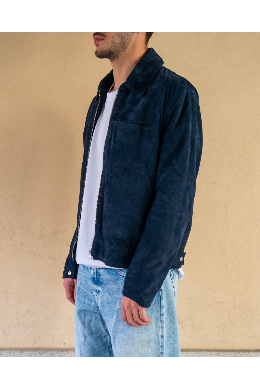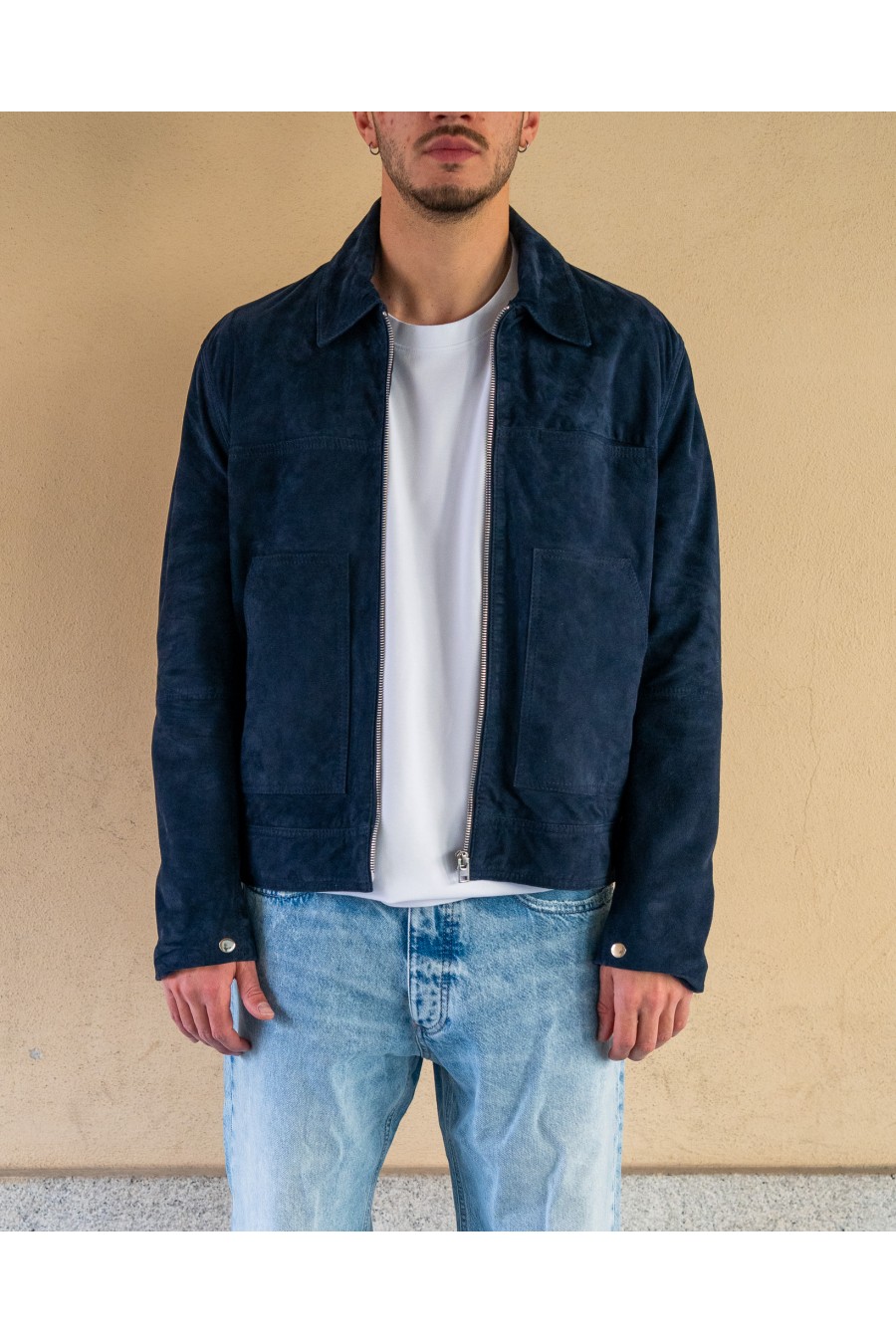 Il design essenziale è caratterizzato da chiusura frontale con zip, colletto classico e tasche applicate, dettagli che donano un equilibrio perfetto tra estetica sartoriale e spirito casual. Il colore blu profondo aggiunge un tocco sofisticato e versatile, ideale per completare outfit urbani e smart casual.