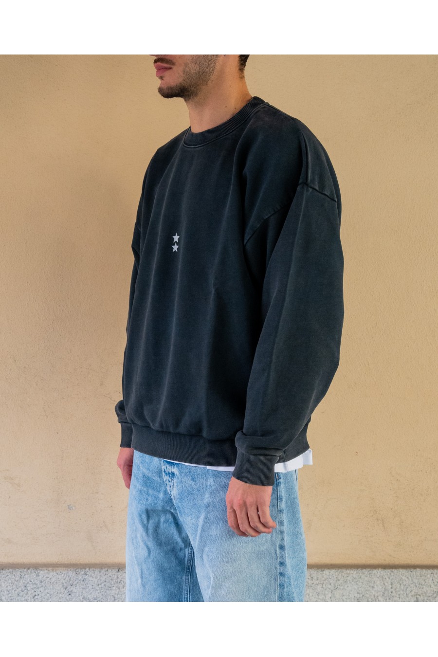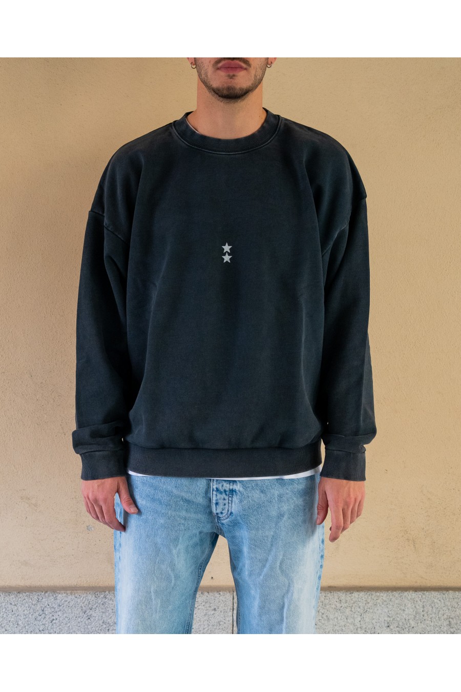 La felpa ICON DENIM FITZ è il capo essenziale per un look streetwear contemporaneo e minimale. Realizzata in cotone di alta qualità, questa sweatshirt da uomo si distingue per il suo design pulito e versatile, impreziosito dal dettaglio iconico della doppia stella stampata sul petto.
