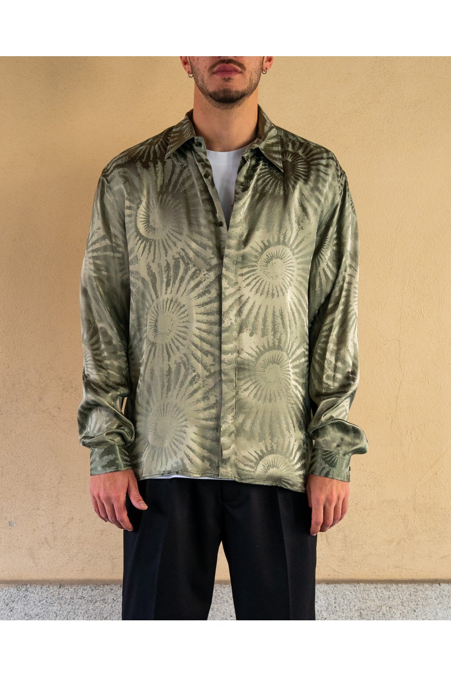 La camicia MARSEM con fantasia jacquard rappresenta un perfetto equilibrio tra eleganza contemporanea e stile ricercato. Realizzata in tessuto leggero e fluido, si distingue per il motivo tono su tono effetto spirale che dona profondità e carattere al capo senza risultare eccessivo.