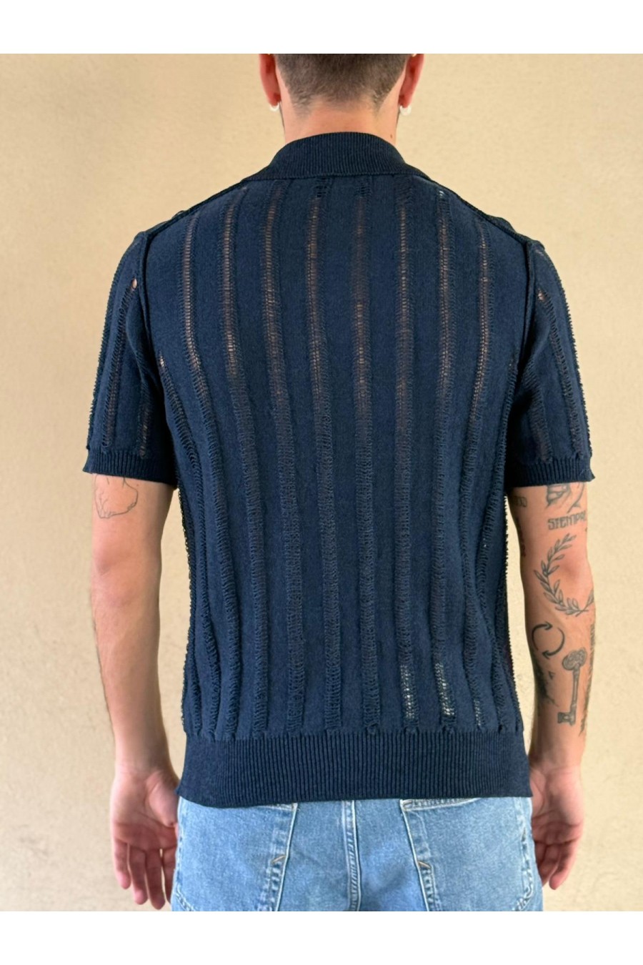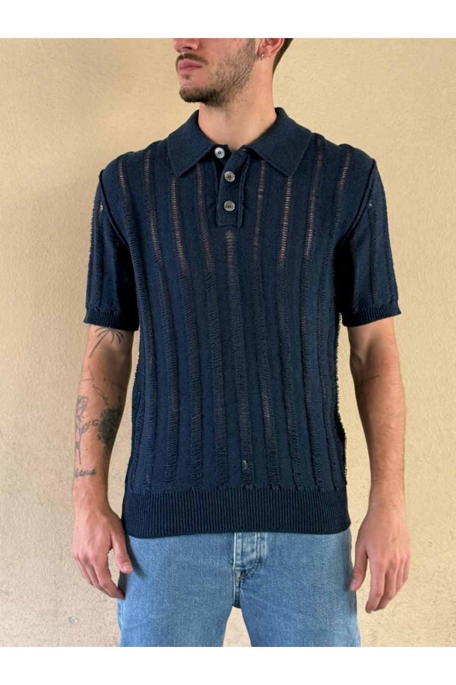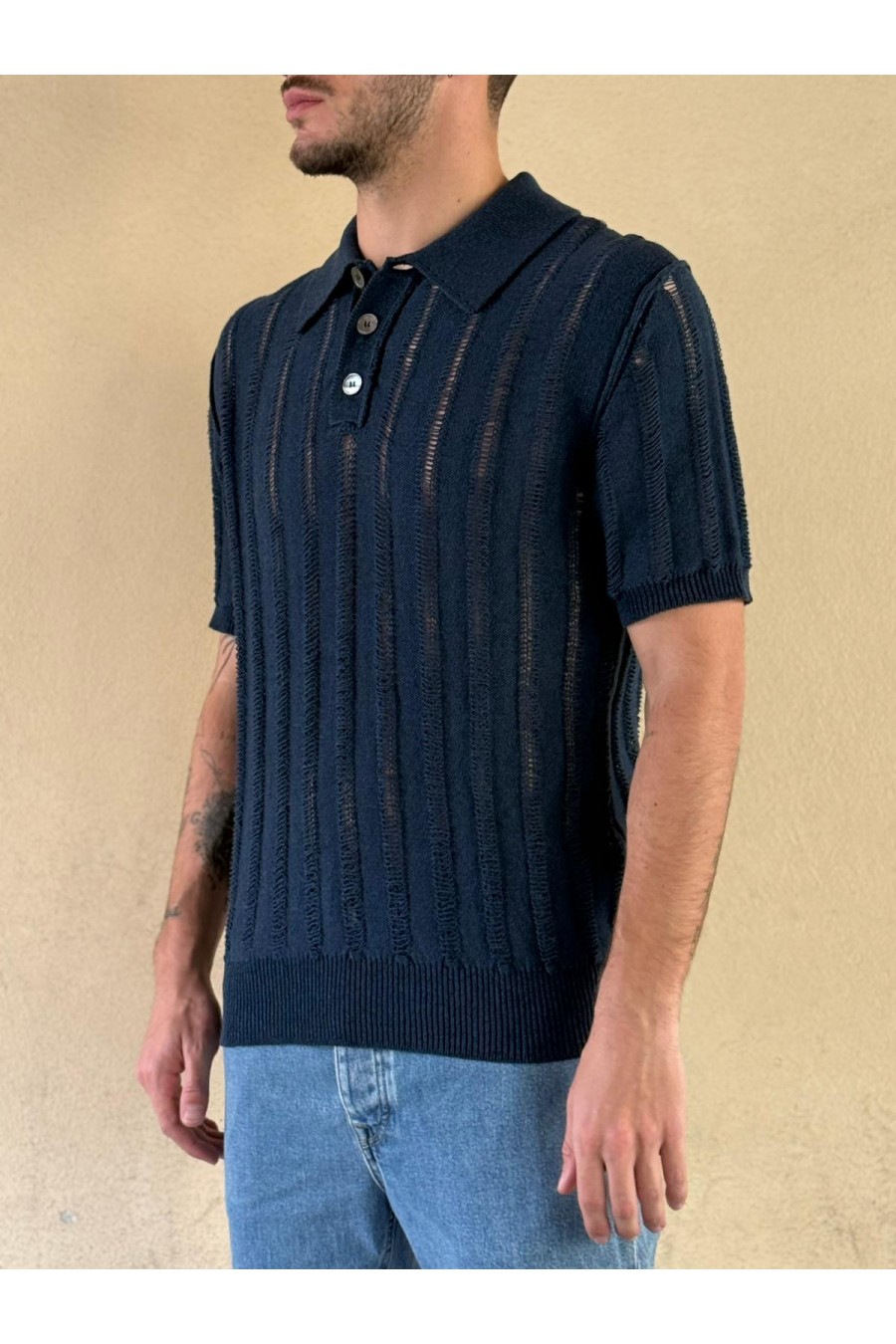La polo uomo AMARANTO blu in maglia traforata è un capo raffinato e contemporaneo, ideale per chi cerca uno stile elegante ma rilassato. Realizzata in tessuto leggero lavorato a maglia, presenta una texture traforata verticale che dona traspirabilità e un look ricercato.