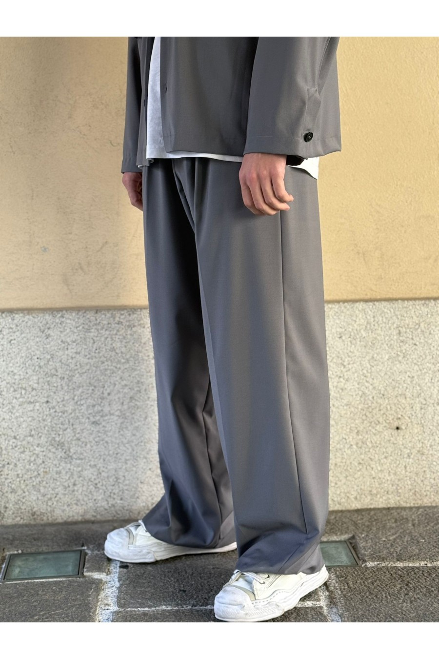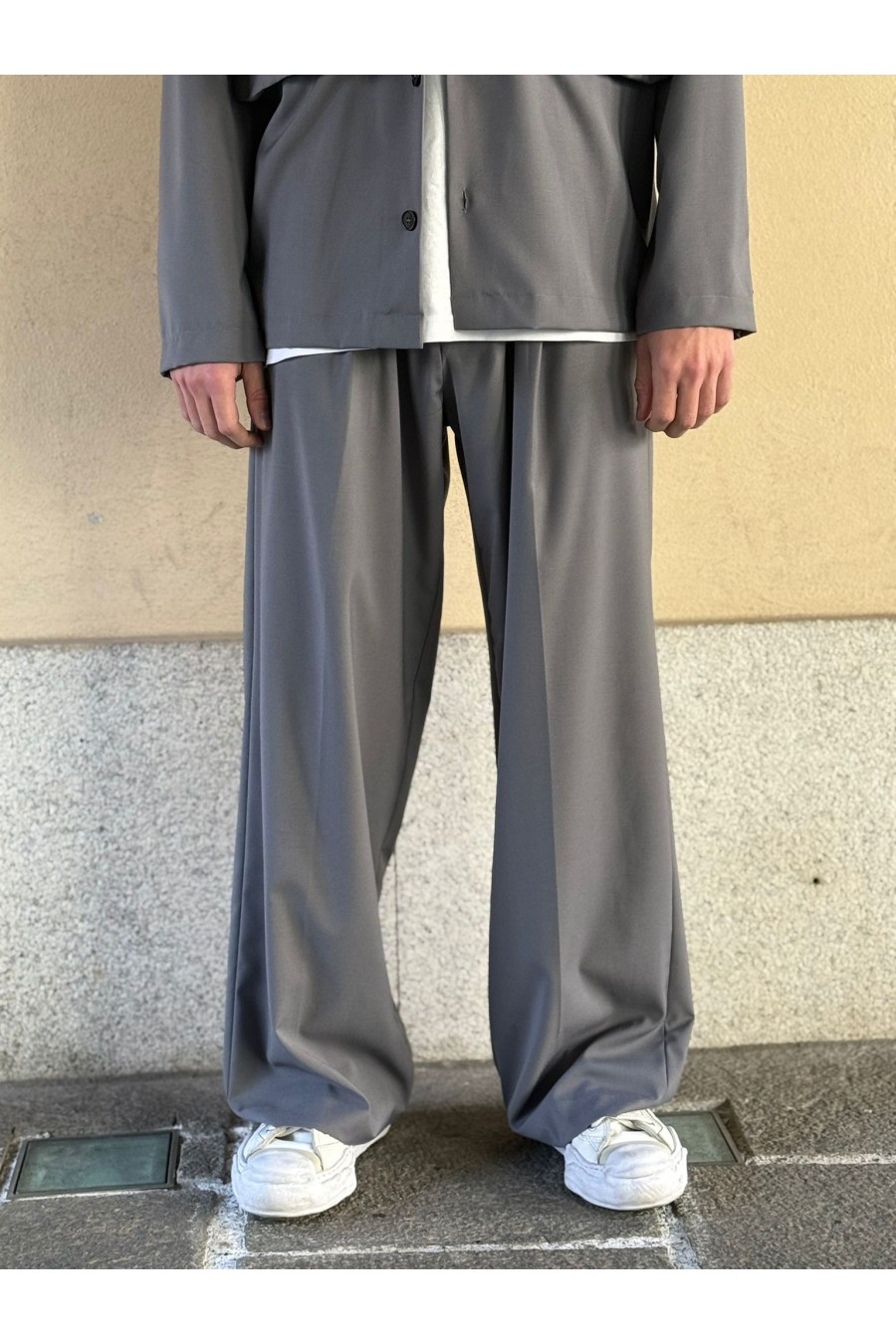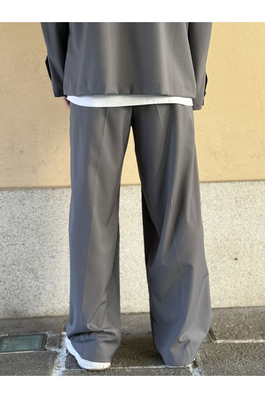 Il design pulito e senza eccessi è valorizzato dal taglio ampio e lineare, che cade morbido sulla gamba creando un effetto elegante ma casual. Il colore grigio, raffinato e facilmente abbinabile, rende questo pantalone ideale sia per look urbani che per abbinamenti più ricercati, anche in coordinato con giacca o camicia dello stesso tessuto.