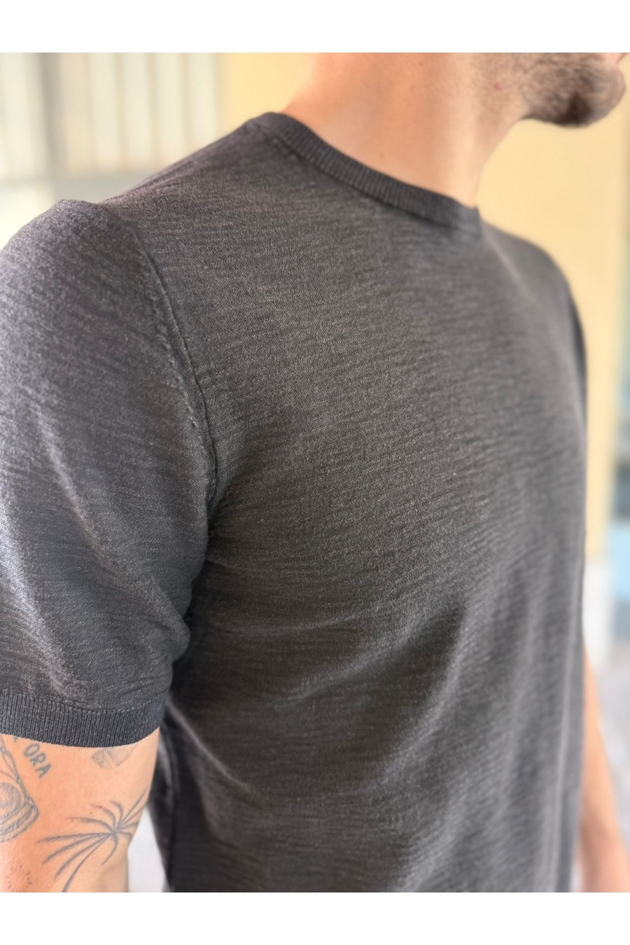 La vestibilità regular fit assicura una silhouette equilibrata e versatile, ideale per essere indossata sia da sola che sotto giacche o camicie. Il design è completato da collo girocollo e finiture a costina, che garantiscono una vestibilità stabile e confortevole.